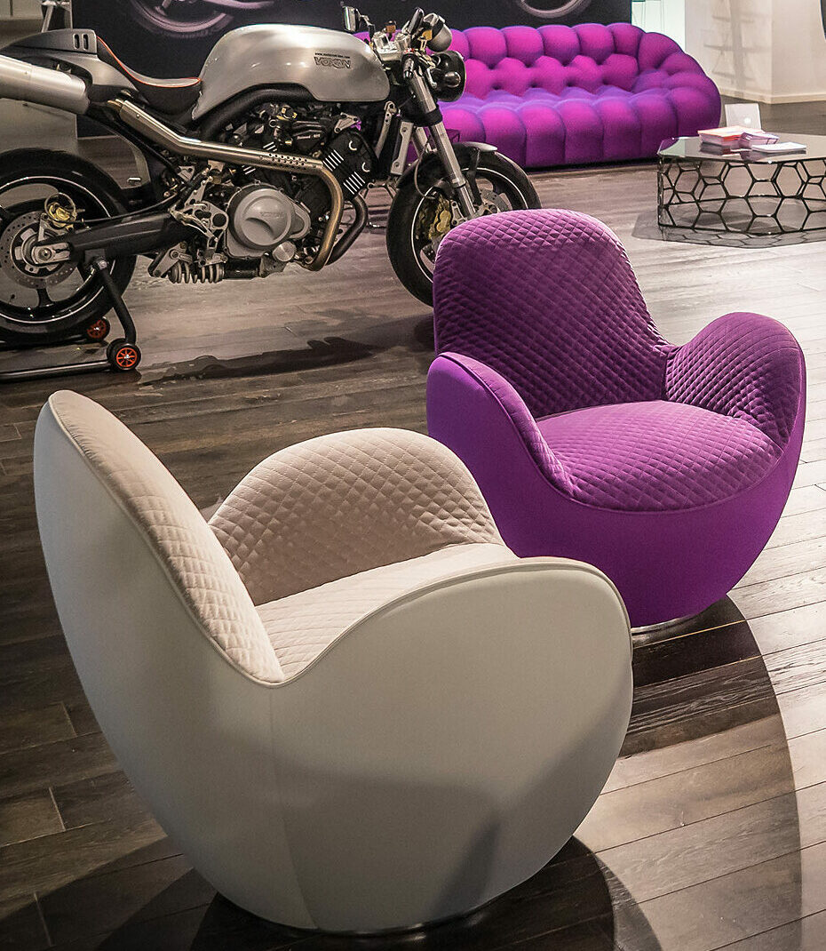 It could be a flower bud or the seat of a futuristic spaceship… AIRCELL is an armchair that fits into any interior design style. It swivels on a rotating base called a “circline,” which allows it to turn smoothly and automatically return to its original position.
