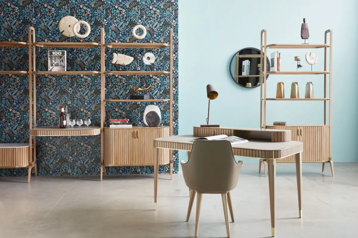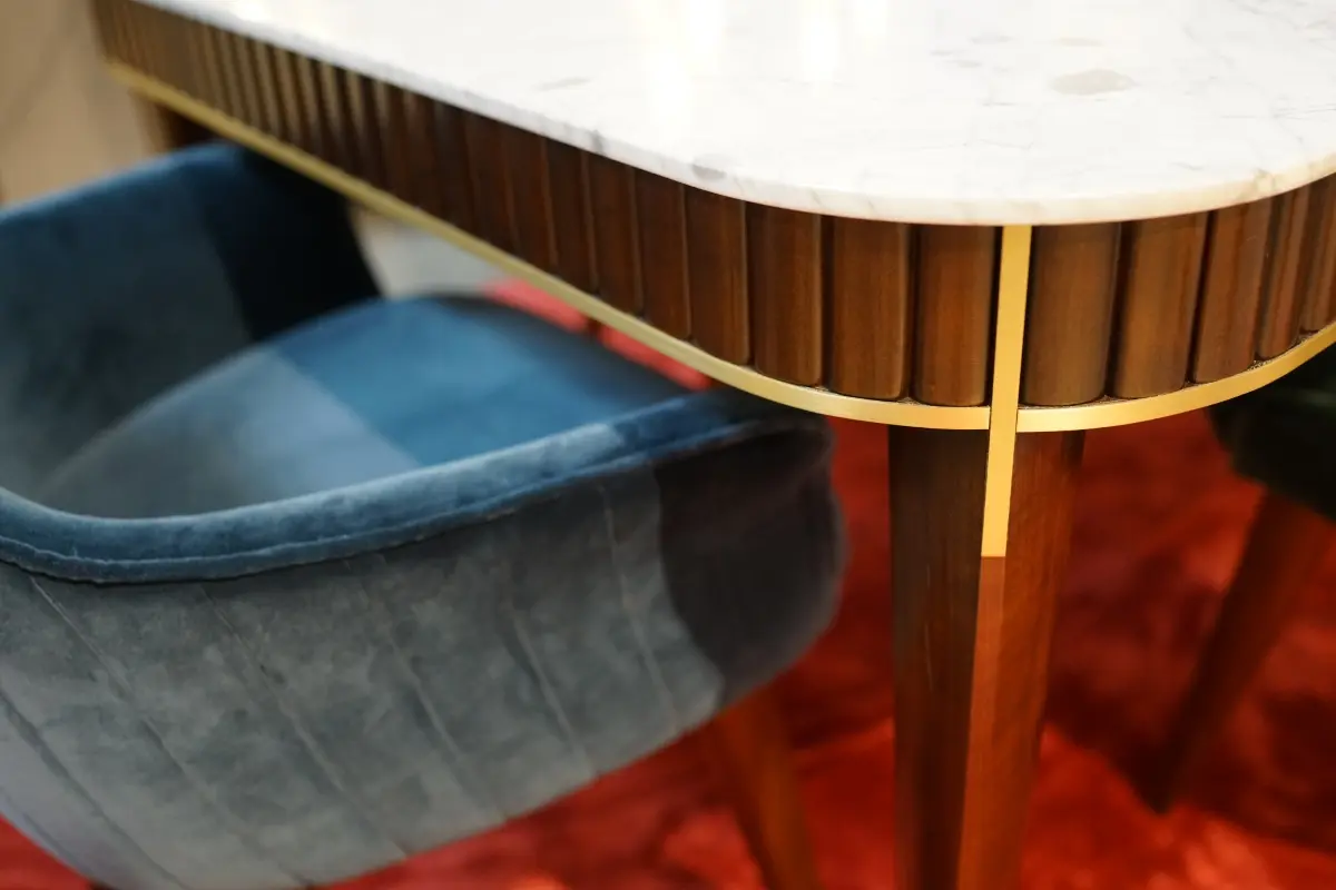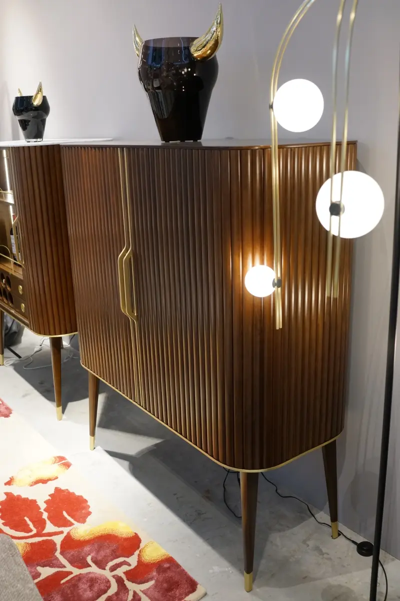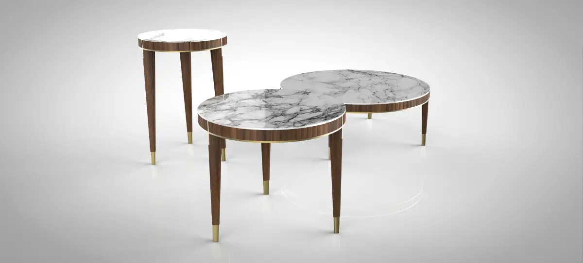 For the first time, Sacha Lakic designed a series of furniture for Roche Bobois’ Nouveaux Classiques collection. He used a mixture of influences, from the Louis XVI style to the industrial furniture of post-war America. Carrara marble evokes opulence, luxurious cherry wood slats create rhythm, and solid brass offers subtle shine throughout the entire collection.Structure in stained solid cherry wood. Top in Carrara marble with water-repellent varnish finish. Applications and feet in brushed brass.