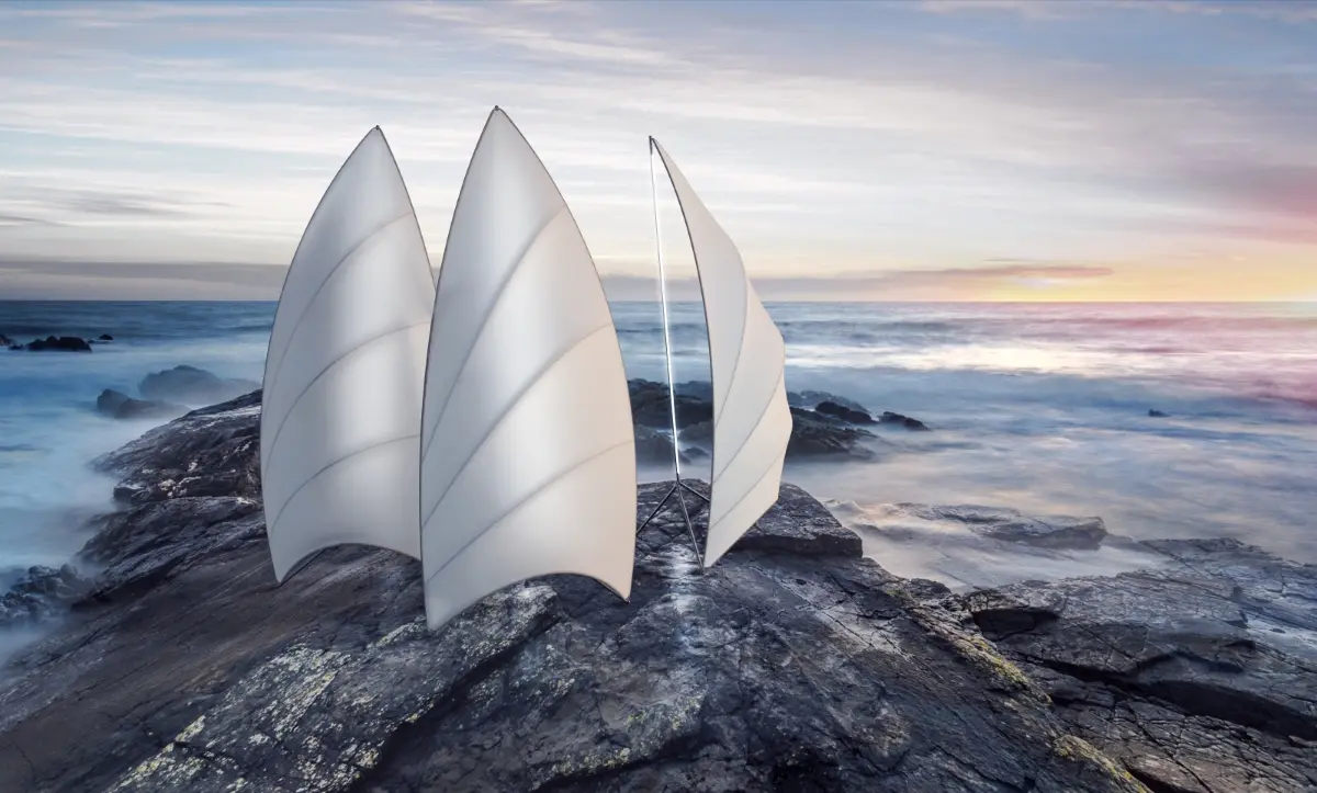 The light source is installed behind the sail, it disperses a soft, soothing light and continues along the base which is realised in chromed steel.