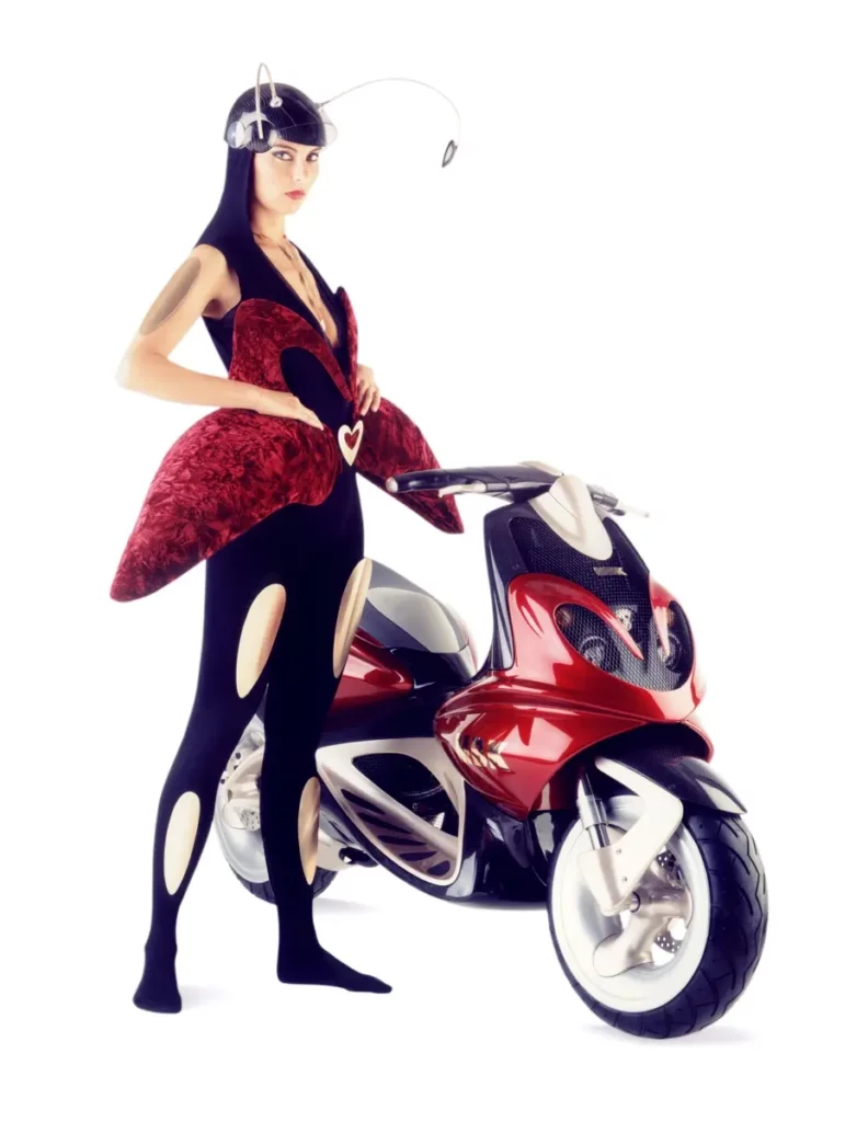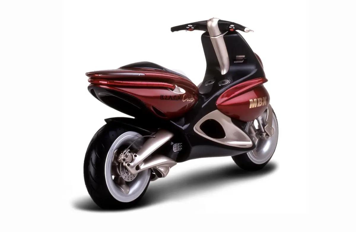 BLACK CRISTAL is a concept scooter. It foreshadows the sports scooter trend. Its design was revolutionnary for its time, it influenced most of European 2 wheels brands. Some technical options are still very modern like its carbon fiber body frame, the exhaust intergrated into rear swinging arm and even the anti-theft system built into the body work design.