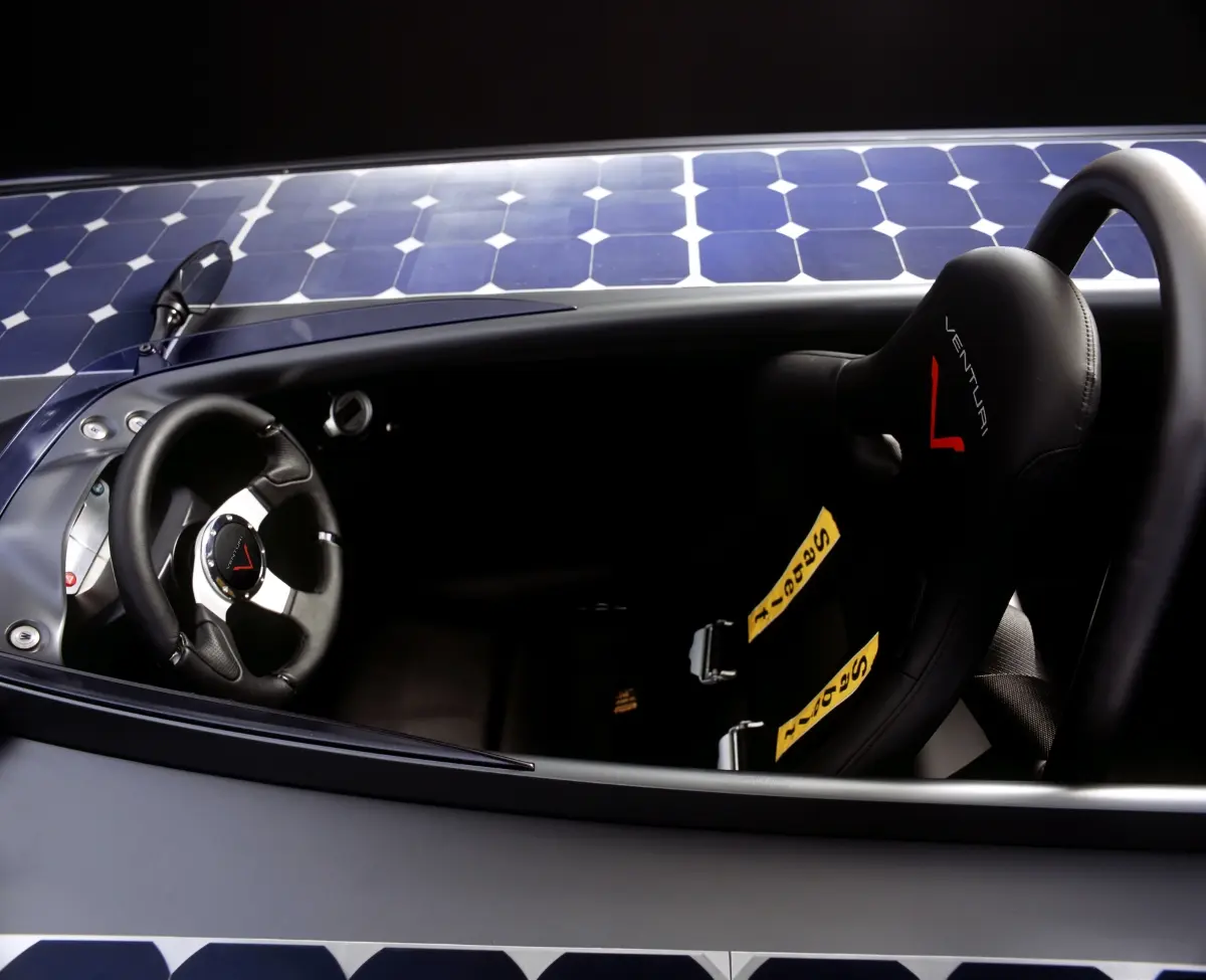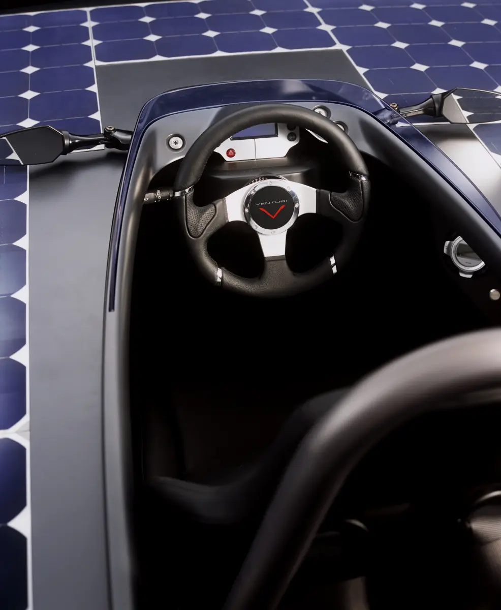 Capable of working with very little energy and of recharging even when in motion, this vehicle of another era does not need to be permanently exposed to the sun in order to move. It is last generation NiMH Venturi NIV-7 batteries – liquid cooled – in fact enable it to restitute stored energy.