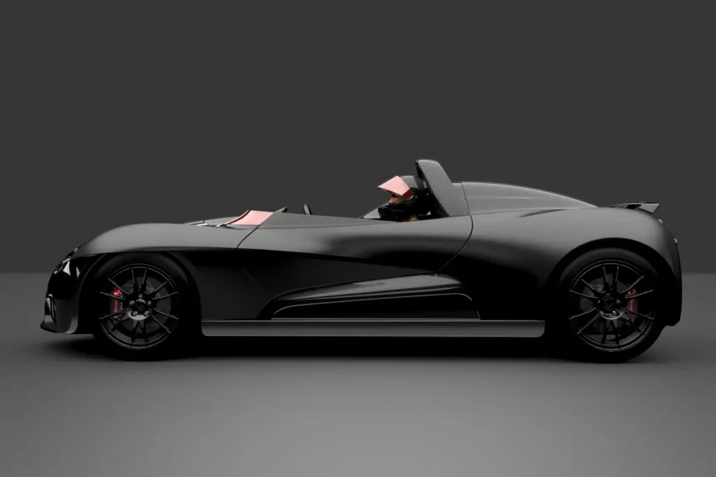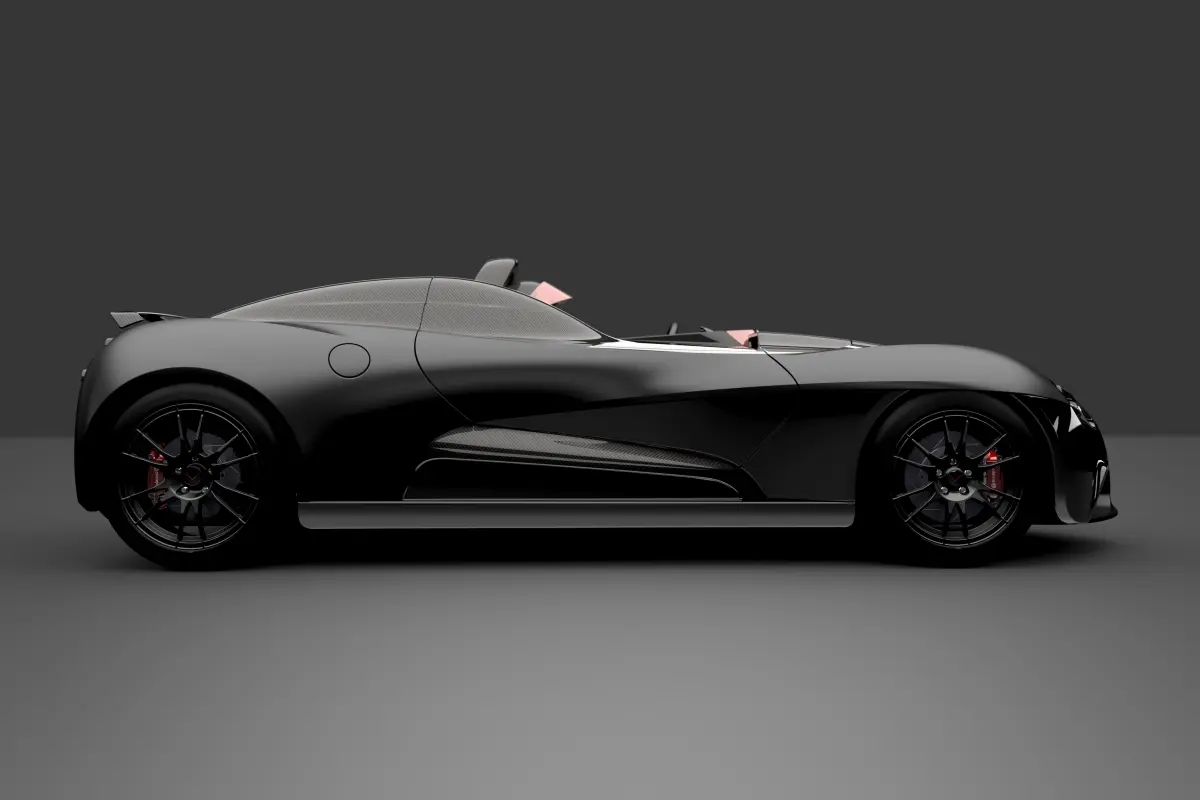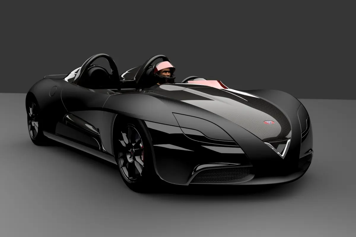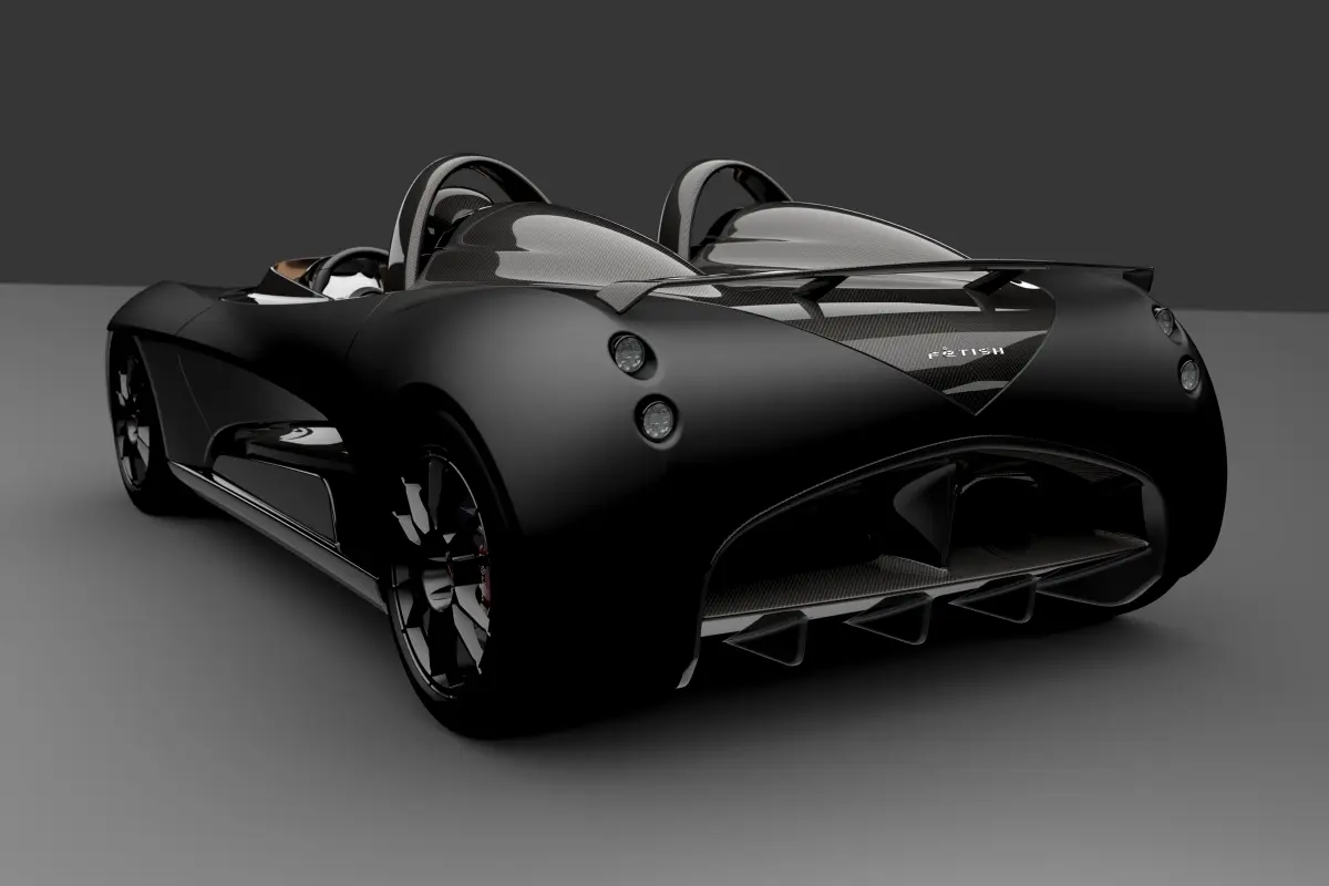 Fetish is a two seater roadster, rear wheel drive, central unit is made of aluminium and body work in carbon fibre