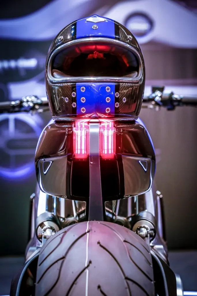 – The circular sidelights in bright, electric blue allow the power harboured inside the WATTMAN to shine out, almost as if the bike had a soul.